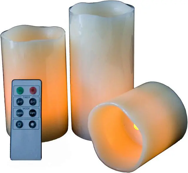 This Set of 3 Flameless Wax Pillar Candle has a round, melted edge. Looks, feels and flickers like a real candle! Operates with a remote control, offering a solution to simplify lighting in hard to access areas. Sconces, chandeliers, and centerpieces are a few great places for this LED Flameless Wax Pillar Candles. Flameless candles are flame free, smoke free, and worry free. And because it's flameless, you can practically use it anywhere. The possibilities are endless!