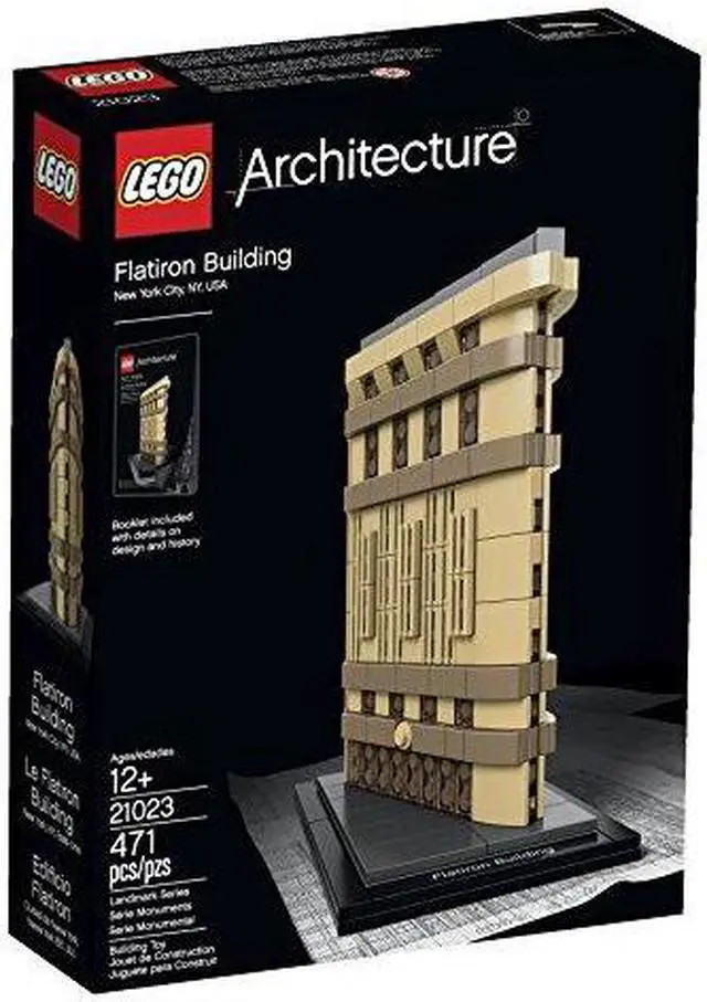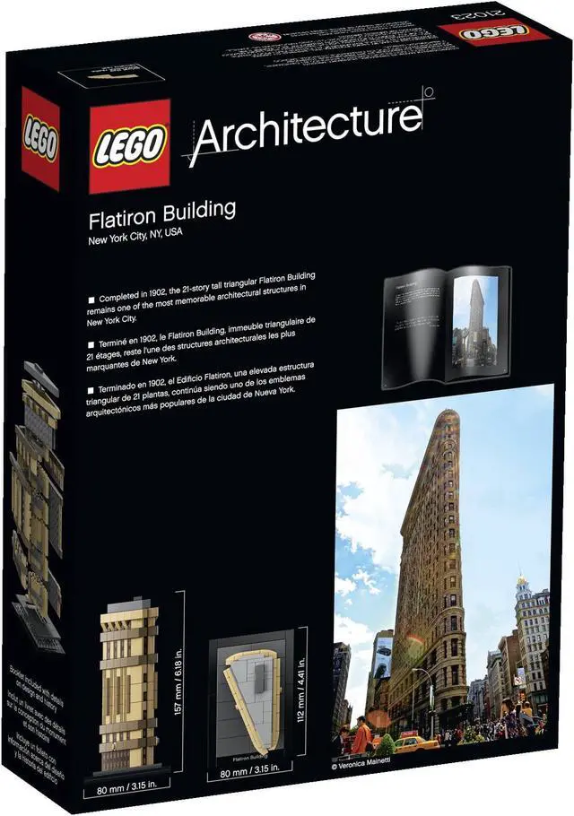Create the Flatiron Building - a LEGO Architecture Landmark Series version of the Renaissance-style, wedge-shaped New York skyscraper. Recreate the historic Flatiron Building skyscraper in LEGO bricks! Build a detailed LEGO brick model of the Flatiron Building, the most striking of New York's earliest skyscrapers. Rising up from a triangular wedge of land between Broadway, Fifth Avenue and East 22nd Street, the 'Fuller Building' - as it was originally named - became one of the city's tallest buildings at 20 stories on completion in 1902. A penthouse, built three years later, added an extra story. The locals' nickname for the building was later officially adopted, and the 'Flatiron Building' has since been officially recognized as a National Historic Landmark. This intricate model captures the limestone facade and elegant Beaux-Arts styling of architect Daniel Burnham's masterpiece in LEGO brick. The LEGO Architecture product line is about celebrating the world of architecture through the medium of the LEGO brick and for all with an interest in design, architecture and history.