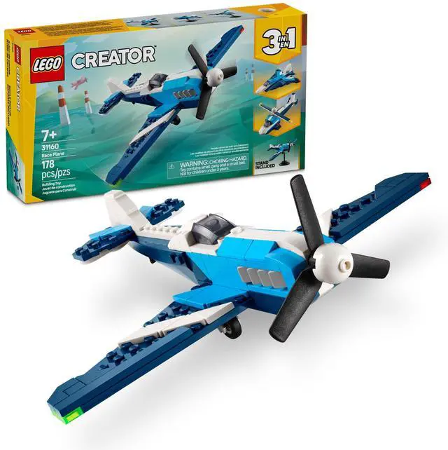 In this LEGO Creator 3in1 playset, kids soar high with a Race Plane, then rebuild it into a jet plane or a helicopter model.