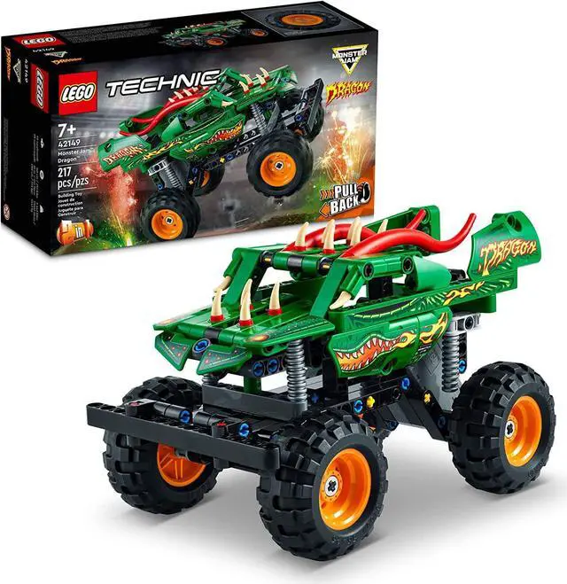A Great Introduction to Engineering LEGO Technic buildable models feature realistic movement and mechanisms that introduce LEGO builders to the universe of engineering in an approachable and realistic way. Get ready for an easy and intuitive building adventure with the LEGO Builder app. Here kids can zoom in and rotate models in 3D, save sets and track their progress. Monster Truck Gift Kids can build and race this LEGO Technic Monster Jam Dragon (42149) toy truck. With pull-back action, this 2-in-1 toy gives them hours of play. Designed for Role Play Kids use the pull-back feature to send the truck racing along before recreating cool monster truck jumps and tricks.