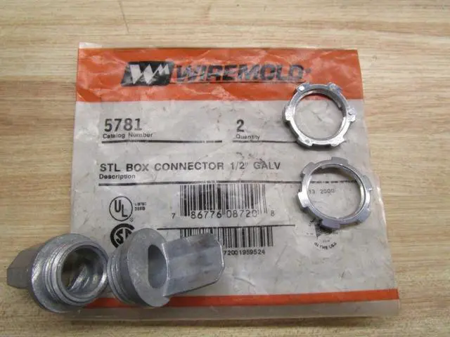 Box Connector, Series 500, 700, For Raceway Height 3/4 in, For Raceway Width 3/4 in, For Raceway Width x Height 3/4 in x 21/32 in, Material Steel, Color Ivory, Number of Channels 1, Mounting Style Screw On, Backing -, Compatible with Product Type 500 Raceways, 700 Raceways, Features Male Connector with 1/2 in Trade Size Conduit Opening, Includes -, Overall Length 1/2 in, Standards ADA Compliant, cULus Listed, UL Listed, UL5, Package Quantity 2. This item has been restricted from sale in the following state (s): []