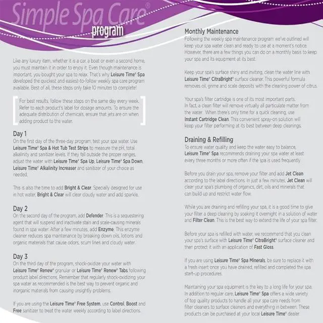 - Use weekly as part of the Leisure Time Simple Spa Care Program