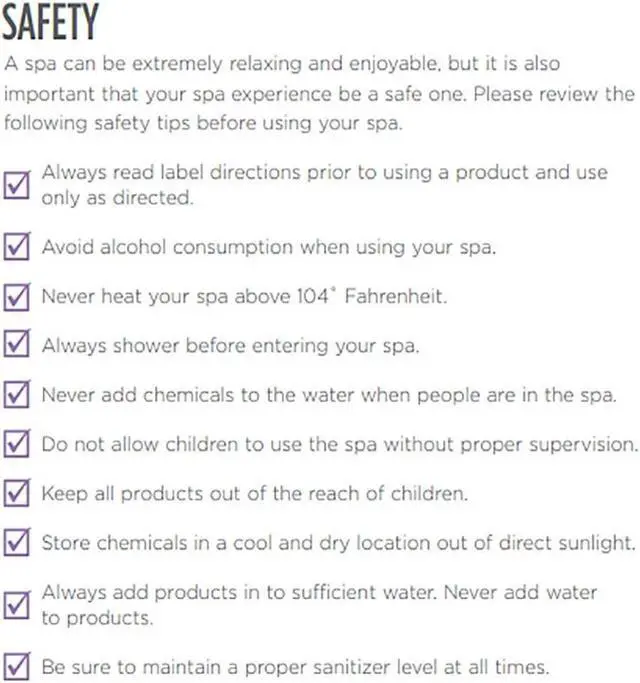 - Breaks down oil, lotion and other organics that cause scum lines and odors in spa water