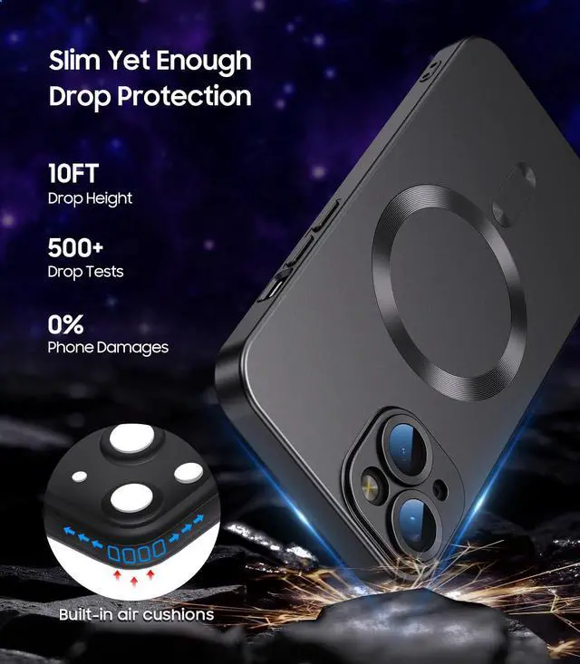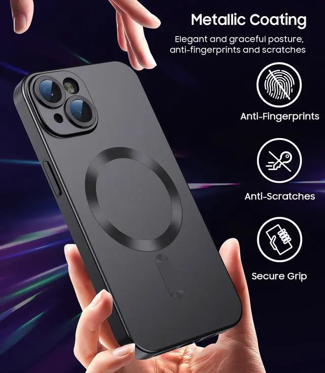 ![Alt view image 3 of 7 - Magnetic for iPhone 15 Case [Compatible with MagSafe][Built-in Camera Lens Protector] Slim Soft Silicone Bumper Shockproof Metallic Shine Phone Case (Black)](https://c1.neweggimages.com/productimage/nb640/C5JMD260322039EXN74.jpg)