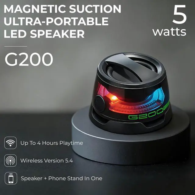 Portable magnetic speaker for iPhone 12/13 & Later – Easily attaches as phone stand, Includes Steel Ring for Universal Compatibility.