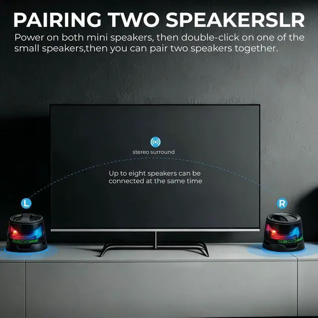 Easily pair or unpair two mini speakers for a seamless experience. Both speakers will sync their light shows and deliver immersive stereo sound, creating a left and right channel for richer audio enjoyment.