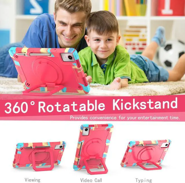 Case for Lenovo Tab K11 LTE with Screen Protector- Lenovo Tab K11 11 inch Case Hybrid Shockproof 360 Rotating Multi-Functional Ring Stand Case with Shoulder Straps and 2PCS Tempered Glass (Candy Pink)