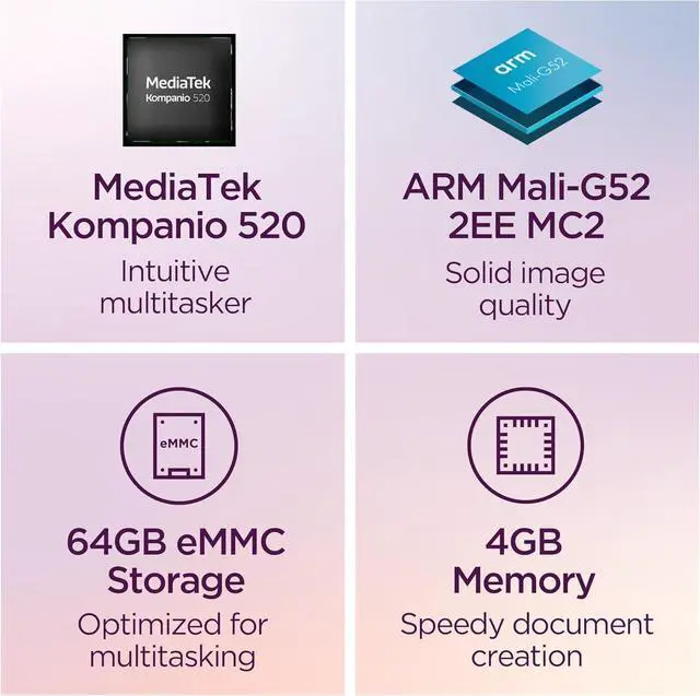 Processor: MediaTek Kompanio 520, 8-Core (2x A76 @2.05 GHz + 6x A55 @2.0 GHz)