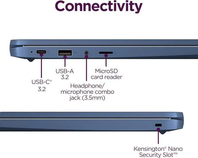 USB Ports: 1 x USB-A 3.2, 1 x USB-C 3.2, 1x MicroSD Card Slot, 1x Headphone/Microphone combo jack