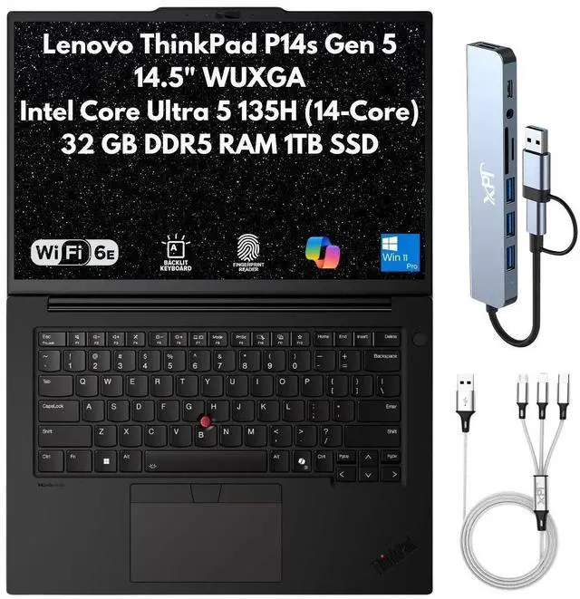 | Features | Touch style fingerprint reader integrated in power button, match-on-chip NPU - Integrated Intel AI Boost, up to 11 TOPS Docking Station and 3-in-1 Cable Included |