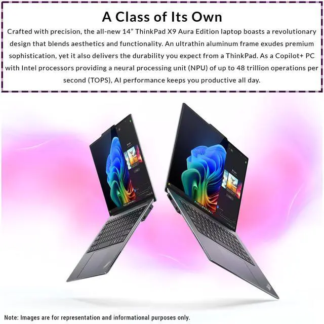 Intel Core Ultra 7 258V Processor Experience exceptional performance and power efficiency with the Intel Core Ultra 7 258V, built on the Intel Evo platform. Ideal for business professionals and multitaskers. Intel Arc Graphics 140V Delivering smooth and vibrant visuals, the integrated Intel Arc graphics offer enhanced multimedia and creative capabilities. 14" WUXGA IPS Display (1920 x 1200, 16:10 Aspect Ratio) Enjoy crisp detail and clarity with a bright, high-resolution IPS display designed for productivity and visual comfort. 32GB LPDDR5x RAM and 1TB SSD Storage Tackle demanding workflows with high-capacity memory and fast SSD storage for quick boot times and seamless multitasking. Sleek, Durable Design With a premium Gray Black aluminum chassis, the ThinkPad X9-14 Gen 1 is built to last and made for portability, offering both style and resilience.