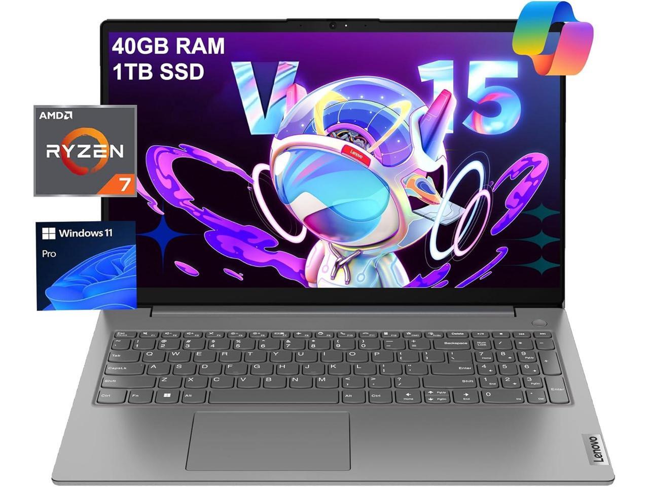 Lenovo V15 Gen 4 Business Laptop (15.6" FHD, AMD Ryzen 7 7730U (Beat Ryzen 5 5500U), 40GB RAM, 1TB SSD), Numeric Keypad, Webcam w/Shutter, RJ-45, Win 11 Pro w/AI Copilot, Grey