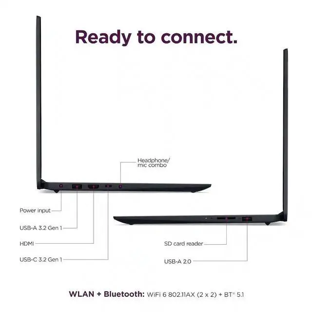 Ports: 1 x HDMI 1.4,1 x USB-A 2.0, 1 x USB-A 3.2, 1 x USB-C 3.2,1xHeadphone Jack,1xMicrophone Input