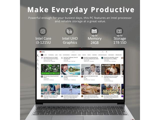 Lenovo IdeaPad 1 Laptop, 15.6" FHD Touchscreen, Intel Core i3-1215U Processor, 16GB RAM, 512GB PCIe SSD, SD Card Reader, HDMI, Webcam, Wi-Fi 6, Windows 11 Home, Grey