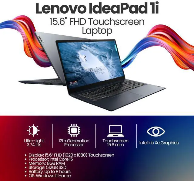 - Lenovo IdeaPad 1 15.6" FHD Touchscreen Laptop - Intel Core i5 - 8GB Memory with 512GB SSD Storage (Abyss Blue)