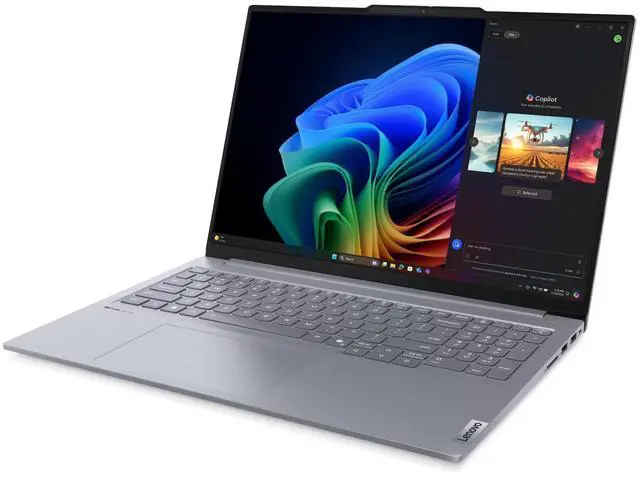 Powered by the Snapdragon X Plus X1P-42-100 processor, this 16" ThinkBook offers 16GB LPDDR5x RAM and a 1TB SSD. Cloud Grey and fanless, it's sleek, silent, and efficient with Windows 11 Pro for business-class performance.