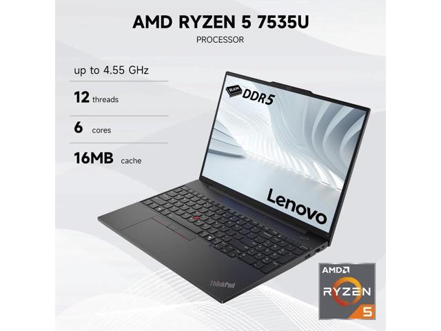 Lenovo ThinkPad E16 Gen 2 Business Laptop, 16" FHD+ Touchscreen 60Hz, AMD Ryzen 5 7535U, 32GB DDR5, 1TB SSD, Wi-Fi 6, Windows 11 Pro, Black