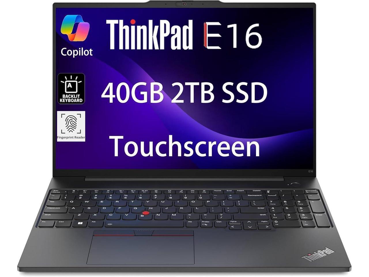 Lenovo ThinkPad E16 Business Laptop (16" FHD+ Touchscreen, AMD Ryzen 5 7530U, 40GB RAM, 2TB SSD, (8-Core Beat i7-1165G7)) Fingerprint, Backlit, FHD Webcam, WiFi 6, Ethernet, Win 11 Pro, Black
