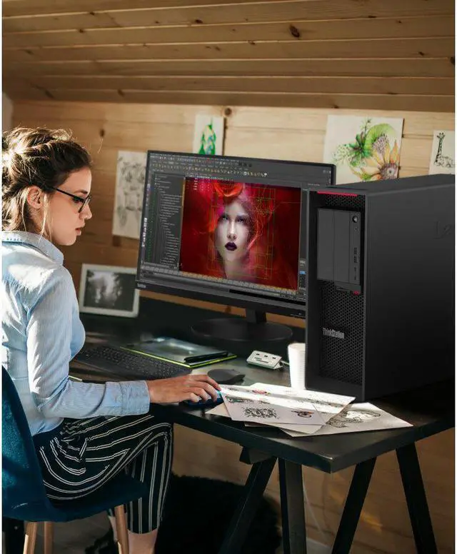 |The ThinkStation P620 workstation tower is equipped with abundant storage and memory capacity, numerous expansion slots, enterprise-class AMD Ryzen PRO manageability, and security features. With unprecedented visual computing powered by NVIDIA® professional graphics support, this eminently configurable workstation is equipped with up to two NVIDIA® RTX A6000 graphics cards with NVLink.