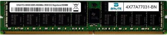 Brute Networks 4X77A77031-BN is an OEM compatible 32GB PC5-38400 DDR5-4800Mhz 2Rx8 ECC registered RDIMM, equivalent to Lenovo labeled PN#: 4X77A77031
