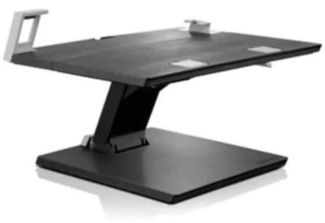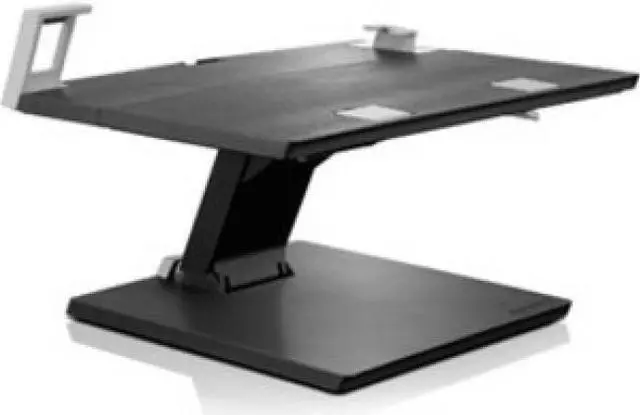 Lifts your laptop to eye level. Bending over your laptop is a pain in the neck! The Lenovo Adjustable Height Laptop Stand lifts your laptop up to a comfortable and ergonomic viewing height. Also, use your laptop as the primary screen or add a monitor and instantly have dual screens. Adjustable Notebook Stand with continuous range of motion that allows for the optimum ergonomic working height; Supports notebook lift, tilt and side-to-side swivel for optimal viewing. Attach to Lenovo mechanical docks with full access to all ports; Offers excellent cable management; Height Adjust w/height lock; Side to Side Pan; Front to Back Tilt w/tilt lock