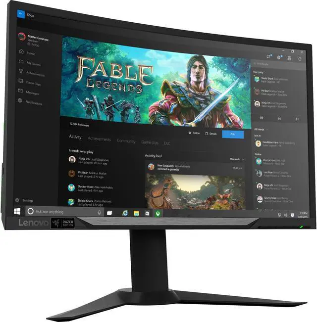 Lenovo Y27g 65C1GCC1US 27" Black Curved 144Hz G-Sync Gaming Monitor, 1920 x 1080, 16:9, 3000:1, 300 cd/m2, 8ms, USB 3.0, HDMI, DisplayPort, 178/178 Viewing Angle, VESA Mountable, Razer Edition Chroma Lighting