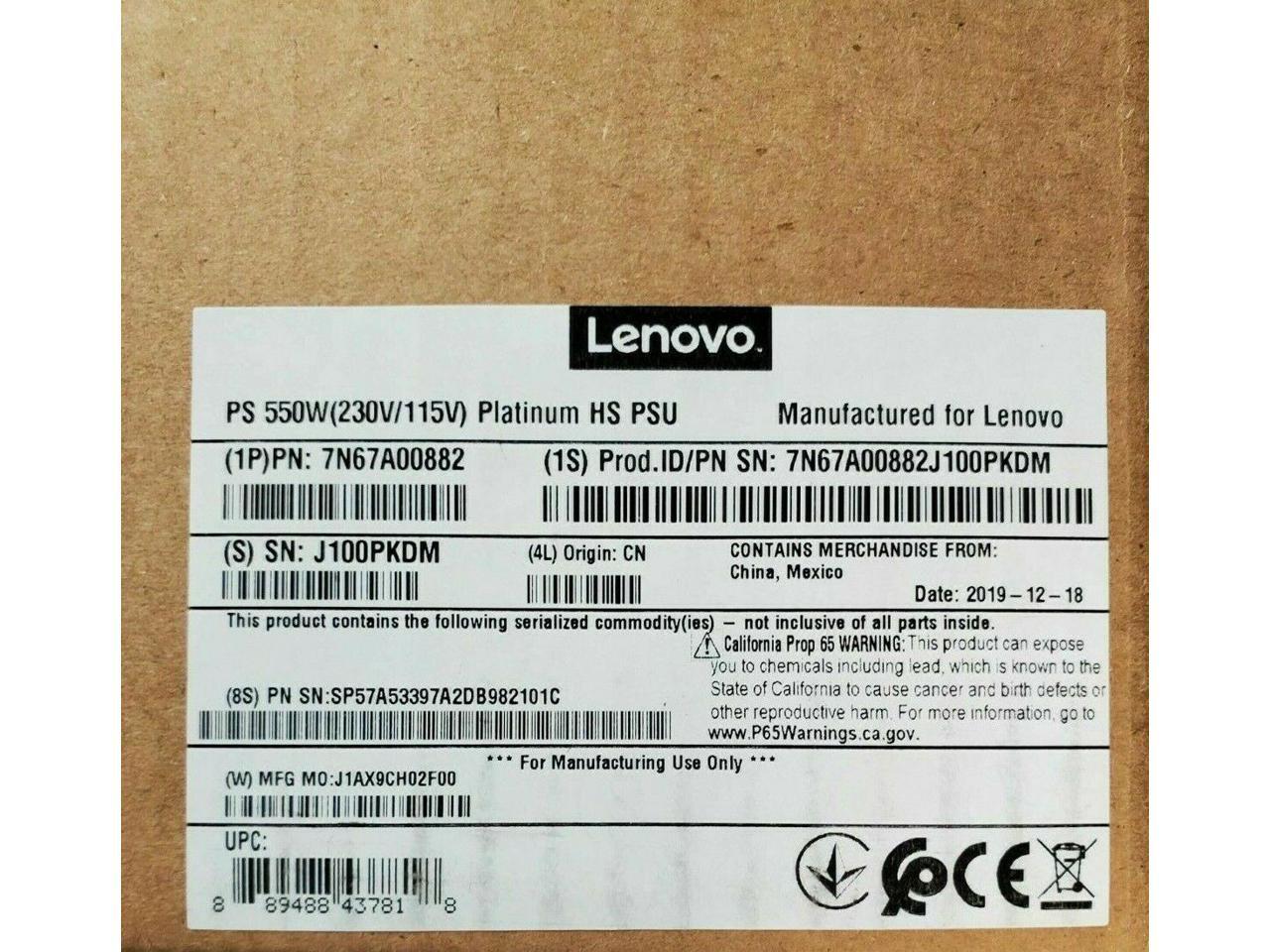 Lenovo ThinkSystem 550W (230V/115V) Platinum Hot-Swap Power Supply - 550 W - 120 V AC, 230 V AC 7N67A00882