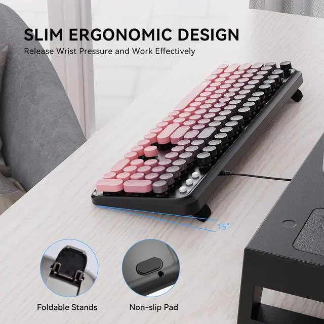 The keyboard features retro round keycaps design, providing a unique typewriter feel with every keystroke.