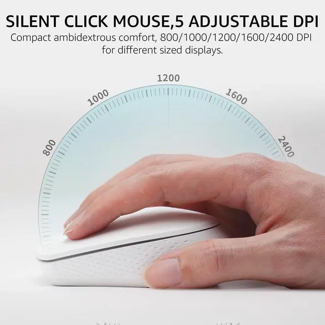 Sculpted comfort shape with 5 adjustable DPI (800/1000/1200/1600/2400) for different sized monitors.