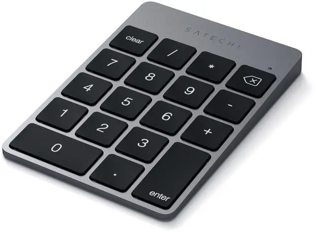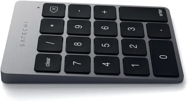 The Aluminum Slim Wireless Keypad uses Bluetooth technology, making it compatible with any Bluetooth–enabled device. Use the keypad to help keep your workspace free of clutter from wires and plugs.