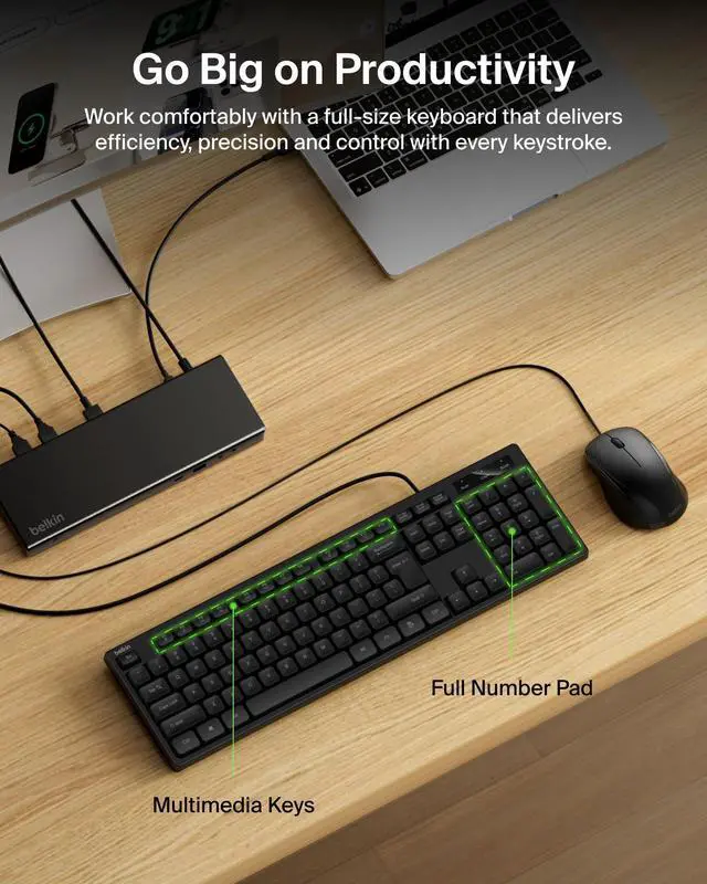 FULL-SIZE KEYBOARD: Perfect for typing emails, writing reports, or streaming videos on your laptop, desktop, or all-in-one computer, the full-size keyboard features low-profile keys and multimedia shortcuts, so you can work comfortably.*
