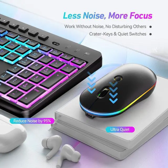 - Our wireless keyboard and mouse combo are built with 7-Color LED Rainbow & RGB Backlit/Convenient Phone holder /Ergonomic Comfortable/Power Saving/Quiet/Smooth typing/Stable 2,4G Wireless Connection/Quality Details