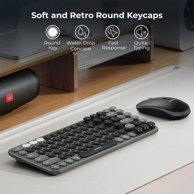 Typewriter round key keyboard features a sleek design and is satisfyingly responsive for fast and efficient typing.