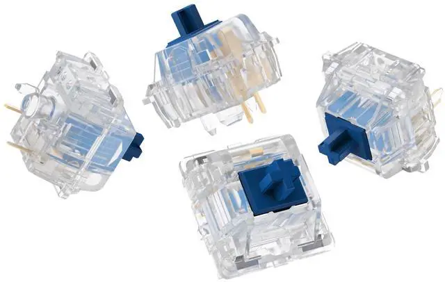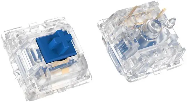 DUROCK Dolphin Silent Linear Switches are similar to the regular linear switches. It is the same molds, Materials and performance as the Silent Alpaca switches. Silent Dolphins have the same great materials for housing and stem while adding muting material to the stem rails that dampen the acoustics of your key strokes. These Silent Linear switches are great for sound-sensitive environments such as the office or any common areas. DUROCK Dolphin Silent Linears Feature: 110 included in each pack Housing: Transparent Clear Stem: 19-4052 Classic Blue, POM Spring Force: 62g Bottom Out Style: Silent Linear 5-pin PCB mount Light factory lube Clear shell is better to setup for RGB keyboards that want to get the most lighting through.