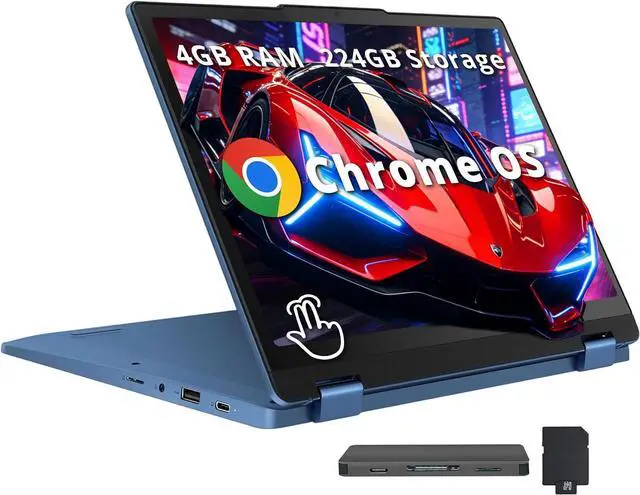 This Lenovo Flex 3i 2-in-1 Chromebook features a 12.2 -inch WUXGA touchscreen for flexible tablet and laptop modes, paired with responsive Intel N100 performance, smooth 4GB LPDDR5 multitasking, and ample 224GB combined storage to handle daily study, office work, online streaming and creative tasks effortlessly; equipped with Intel UHD Graphics, HD webcam, stable Wi-Fi 6 and secure Chrome OS, it delivers all-day reliable usage, easy connectivity and worry-free system maintenance, while the matched docking station bundle further expands peripheral access and file storage for enhanced portable productivity.