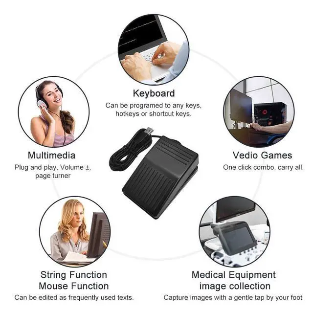 Programmable KeyboardThis PC foot pedal is equivalent to a standard USB keyboard or mouse, the key can be configured via software as keyboard, mouse, video/music player, game, string function. HID device, you can delete the software after configuration.