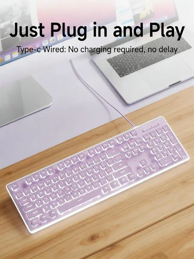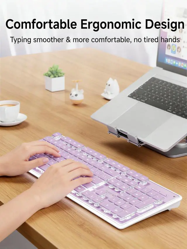 Ergonomic Design & 26-key Anti-ghosting: Purple Keyboard adopts concave & convex design keys to fit your fingers great, typing smoother without tiring. The bottom is equipped with two footrests and 4 anti-slip bottom stickers. After adjustment, the egonomic keyboard has a 7° tilt, making your typing more comfortable. 26 keys can be operated simultaneously without conflict, so you can experience fast answers when playing games or typing
