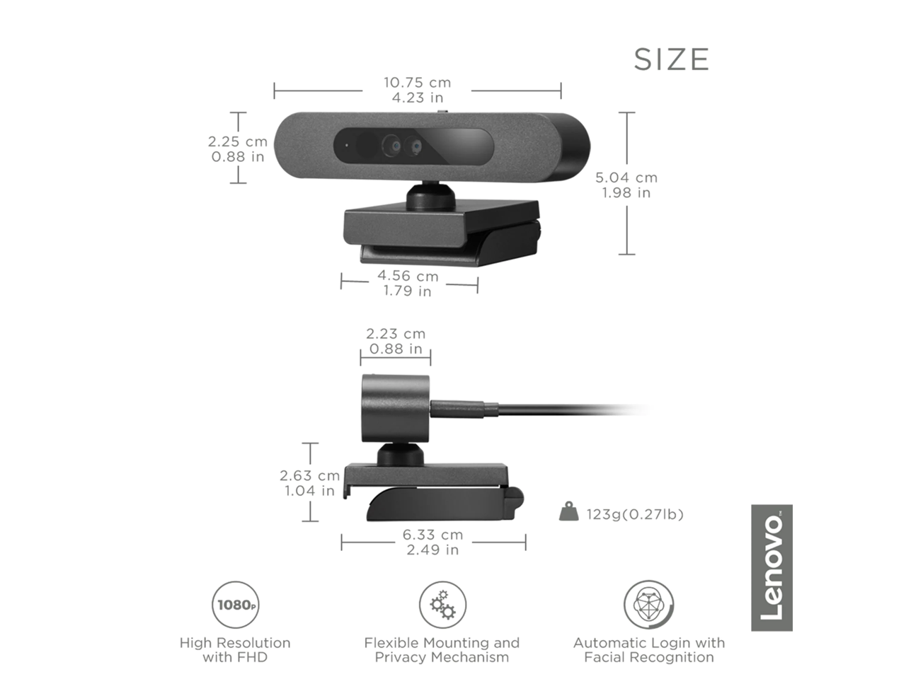 Lenovo 500 Full HD Webcam Black USB 2.0 Retail 1 Pack GXC0X89769