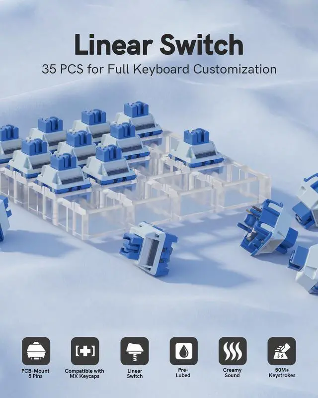 • 35pcs Switches The Keymatic Mechanical Gaming Keyboard Switches include 35 high-performance switches, ideal for upgrading an existing keyboard or repairing worn-out switches,ensuring you have a consistent set of high-performance mechanical switches.