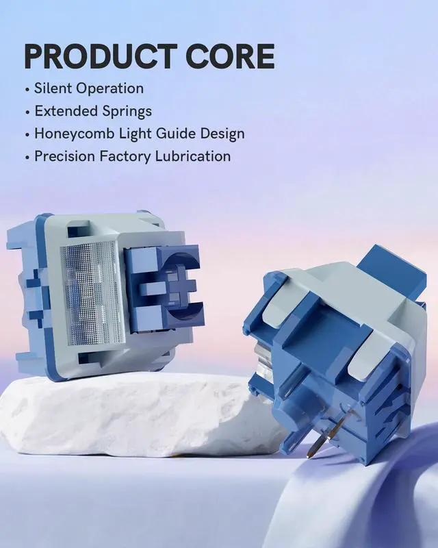 • Factory Pre-Lubricated Each mechanical switch is factory-pre-lubricated to reduce friction between internal components. This pre-lubrication not only ensures smooth actuation but also minimizes switch noise and extends the overall lifespan.