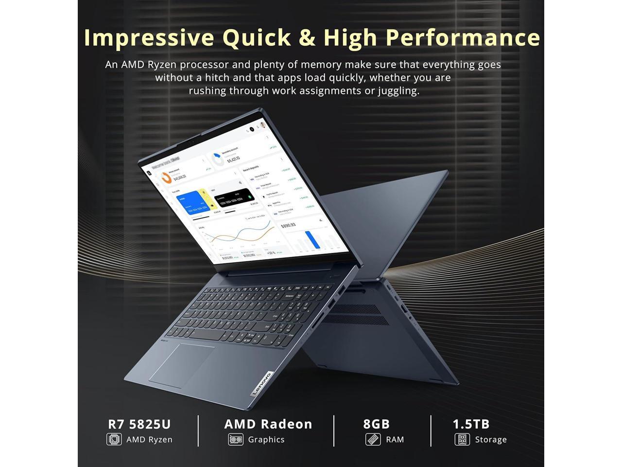 Lenovo IdeaPad 5 15.6" FHD Laptop, AMD Ryzen 7 5825U, 8GB RAM, 1.5TB Storage(512GB SSD+1TB Docking Station Set), AMD Radeon Graphics, Backlit Keyboard, Wi-Fi, Webcam, Win 11 Pro, Abyss Blue