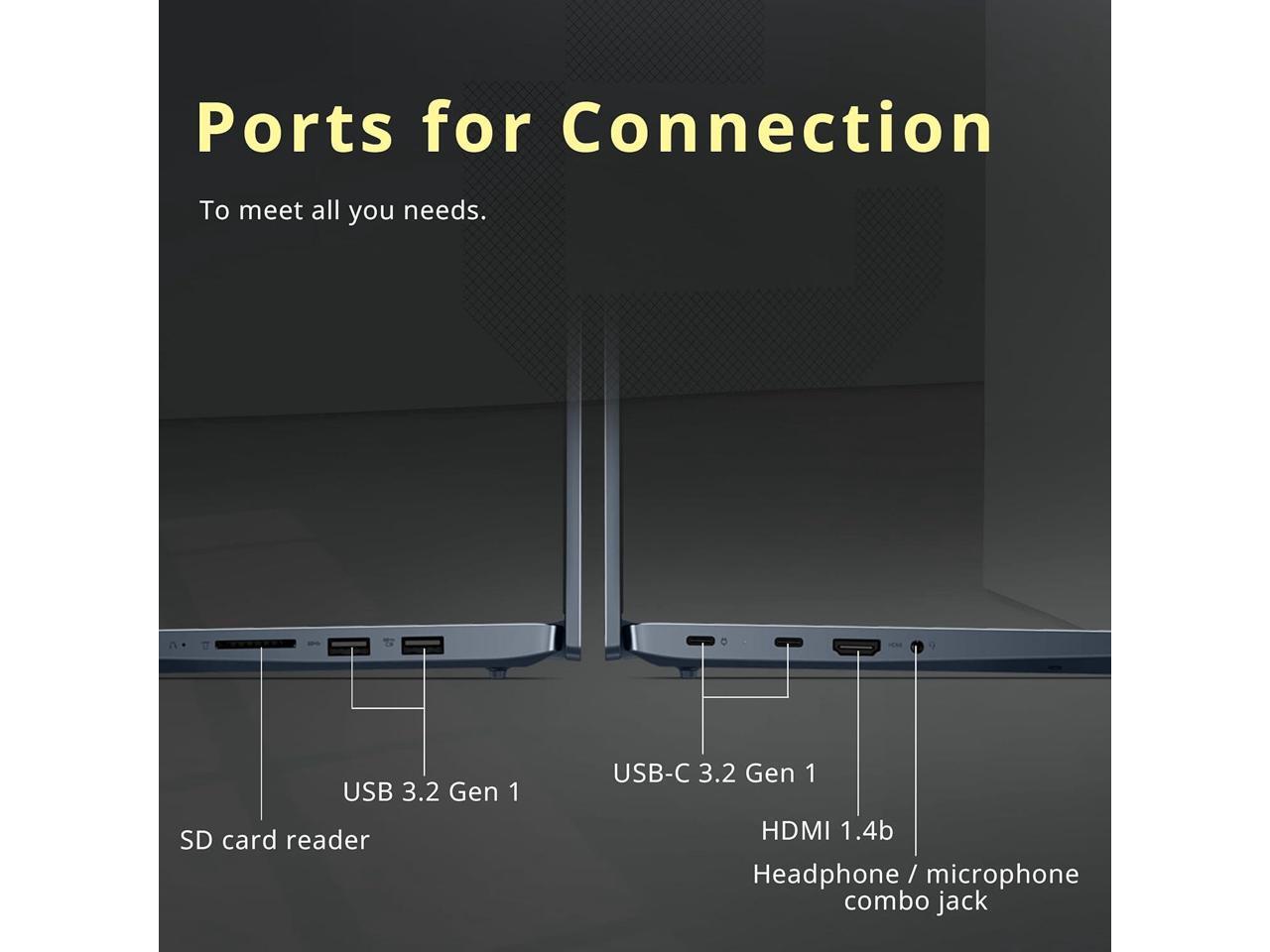 - Windows 11 Pro&Ports:2x USB-A, 2x USB-C, 1x HDMI, 1x headphone/microphone combo, 1x SD card reader. Wi-Fi 6 + Bluetooth.