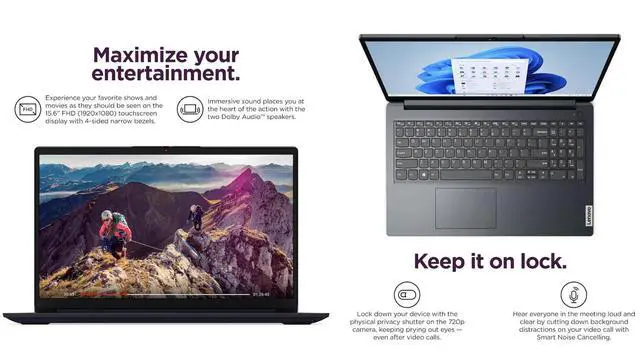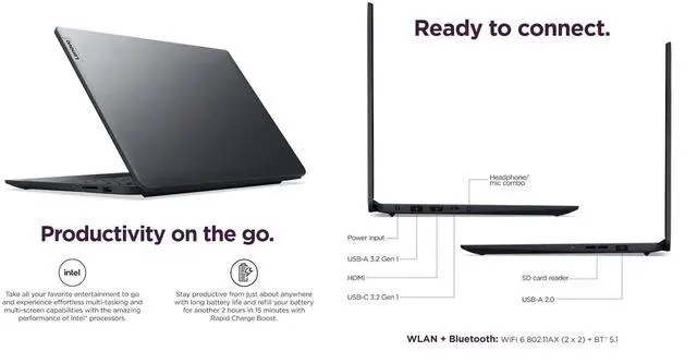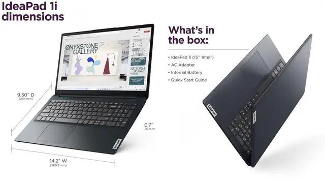 Model: Lenovo IdeaPad 1iForm/Style: StandardProcessor: 13th Gen Intel Core i5-1335U 1.30GHz Processor (upto 4.6 GHz, 12MB Cache, 10-Cores, 12-Threads, 2 Performance-cores)Memory: 8GB DDR4 RAM (8GB Onboard + 0GB SO-DIMM)Graphics: Intel Iris Xe shared Integrated Graphics, Storage: 2TB PCIe SSD (Solid State Drive)Operating System: Windows 11 Home-64Display: 15.6" IPS FHD (1920x1080) 60Hz 16:9 Touchscreen DisplayConnectivity: 802.11ax Wifi, Bluetooth 5.3, Ports/Slots:, 1 USB 2.0, HDMI, USB 3.2 Type-C, SD Card Reader, Headphone/Microphone Combo JackInput/Output: Webcam, Grey, Standard Keyboard, Battery: 65W PSU, 3-Cell 42 WHr BatteryOther Features, Color: Abyss BlueWeight: 3.5lbProduct Dimensions (WxLxH): 9.4 IN x 14.2 IN x 0.75 IN1 Year Manufacturer warranty from Velztorm (Professionally upgraded by Velztorm)