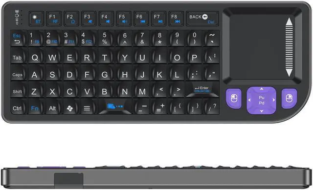 • Mini keyboard with touchpad,It combines multiple functions: wireless keyboard + mouse + PC game control + touchpad,Suitable for PC/Tablet/TV/smartphone.Touchpad sensitivity can be adjusted to your preference (Low/Medium/High: via Fn + Spacebar).