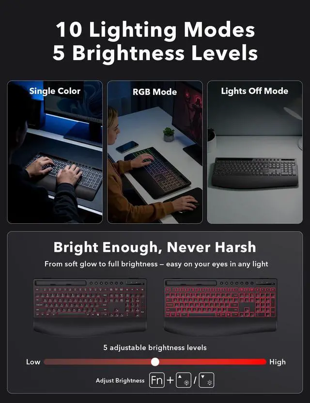 Dynamic light waves glide across the keyboard — bring your setup to life.