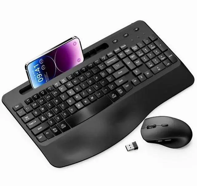 Experience seamless productivity with the Lovaky Rechargeable Wireless USB Keyboard and Mouse Ergonomic Combo. This full-sized keyboard features a standard 104-key US QWERTY layout with independent, well-spaced keys, including a dedicated number pad for efficient data entry. The foldable stand ensures a comfortable typing angle for extended use, while the silent wireless mouse offers whisper-quiet clicks and adjustable DPI settings (800/1200/1600) to suit your preferences. Utilizing reliable 2.4G wireless technology, this combo delivers a stable connection up to 10 meters without delays or dropoutssimply plug in the included USB receiver for instant use. Both devices are designed with power-saving features, including on/off switches and automatic sleep mode after periods of inactivity, effectively extending battery life. Compatible with Windows XP, Vista, 7, 8, and 10, this ergonomic combo is ideal for any PC, laptop, or notebook setup.