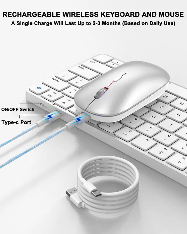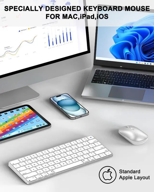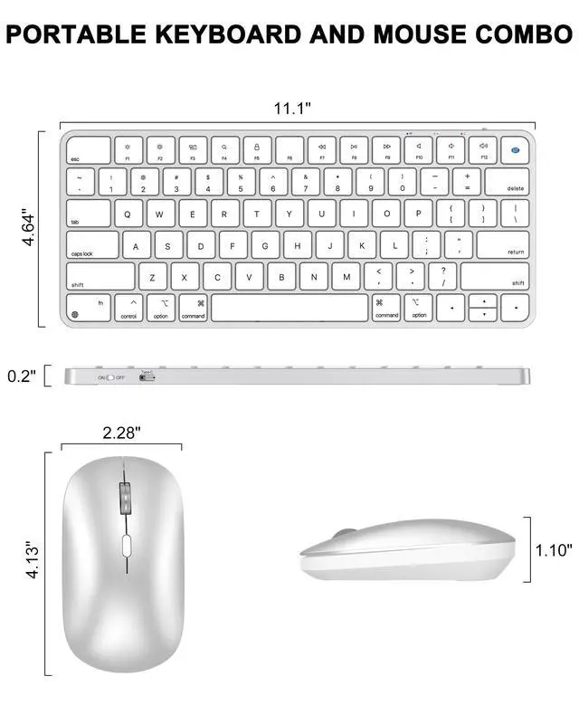 Bluetooth Keyboard and Mouse for Mac, Rechargeable, Mini Size, Ultra Slim, Quiet Typing, 4 Level DPI, Wireless Keyboard and Mouse Compatible with Mac, iPad, iPhone, MacBook Air/Pro