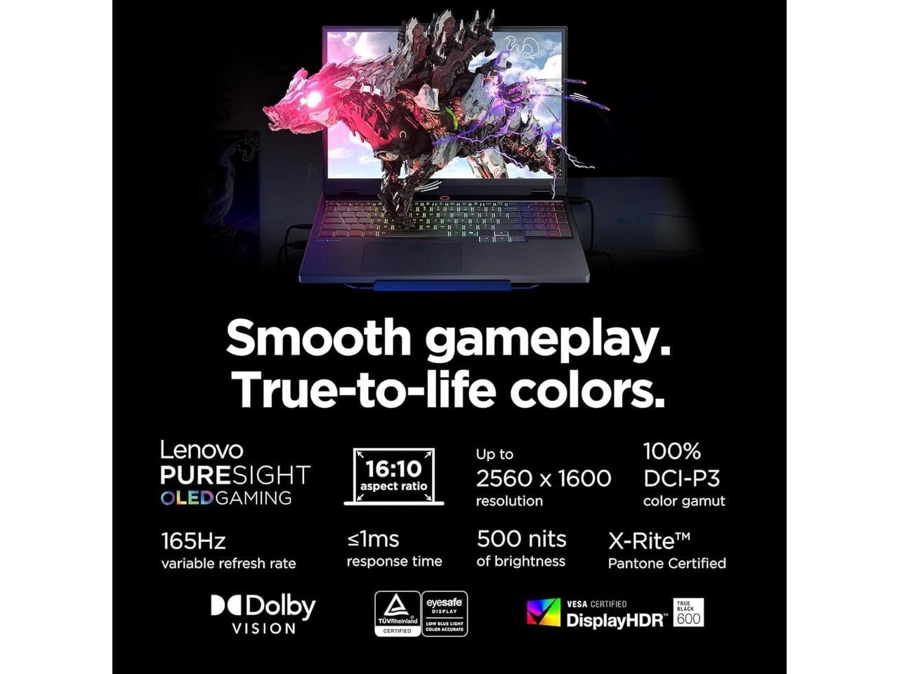OLED display with high refresh rate and premium color accuracy provides ultra-smooth, lifelike visuals, supporting up to three external monitors.
