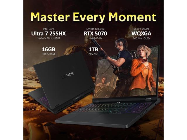 Lenovo Legion Pro 5i 16" WQXGA 165Hz Gaming Laptop, Intel 20-core Ultra 7 255HX (Beats Intel i9-14900HX), 16GB RAM, 1TB SSD, GeForce RTX 5070, Backlit kb, Win 11 Pro, Black, 1TB Docking Station