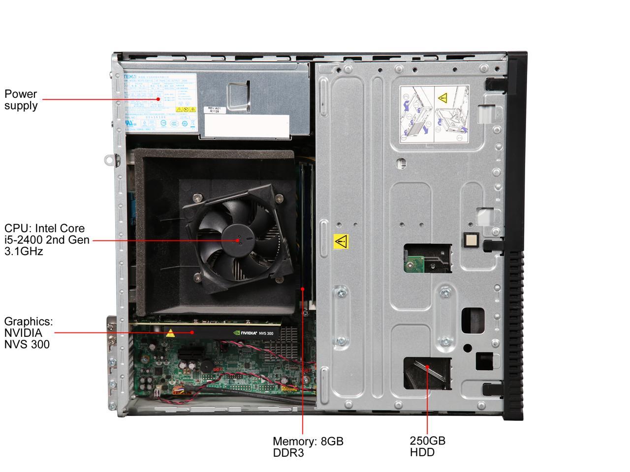 Lenovo Grade A Desktop Computer M71E Intel Core i5 2nd Gen 2400 (3.10 GHz) 8 GB DDR3 250 GB HDD NVIDIA NVS 300 Windows 10 Home (Free Upgrade to 2-Year Warranty with Registration)